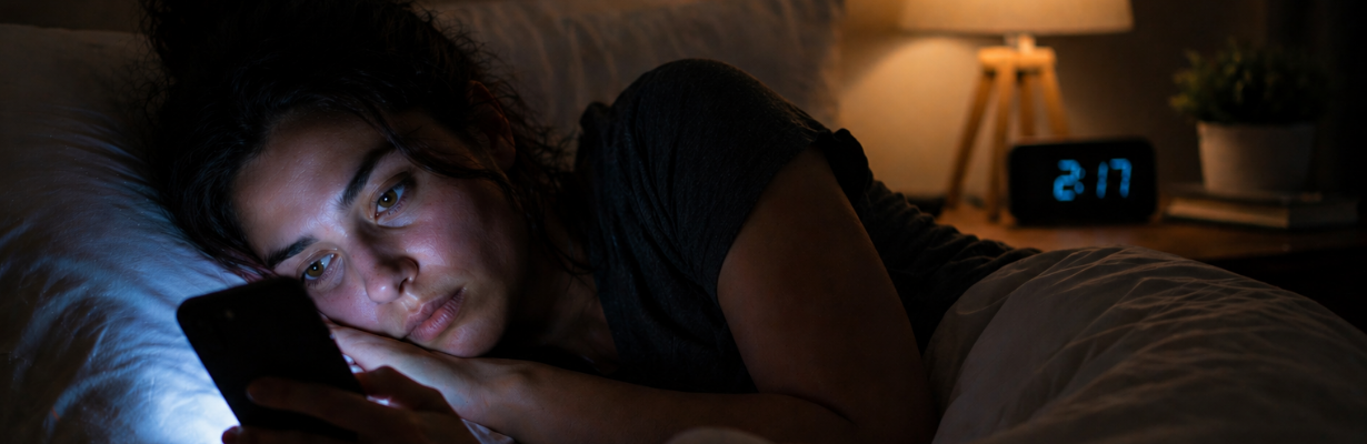 A young professional scrolls through emails she forgot to send earlier. A college student lies awake replaying a conversation from the day. A father wakes briefly, checks the clock, and calculates how many hours remain before his alarm rings.